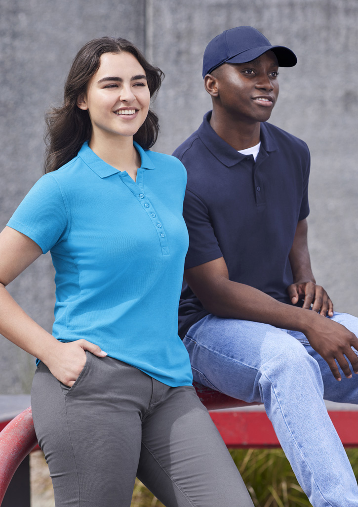 - 65% Polyester, 35% Cotton pique knit, 210 GSM; UPF Rating - Light colours 30+, Dark colours 50+