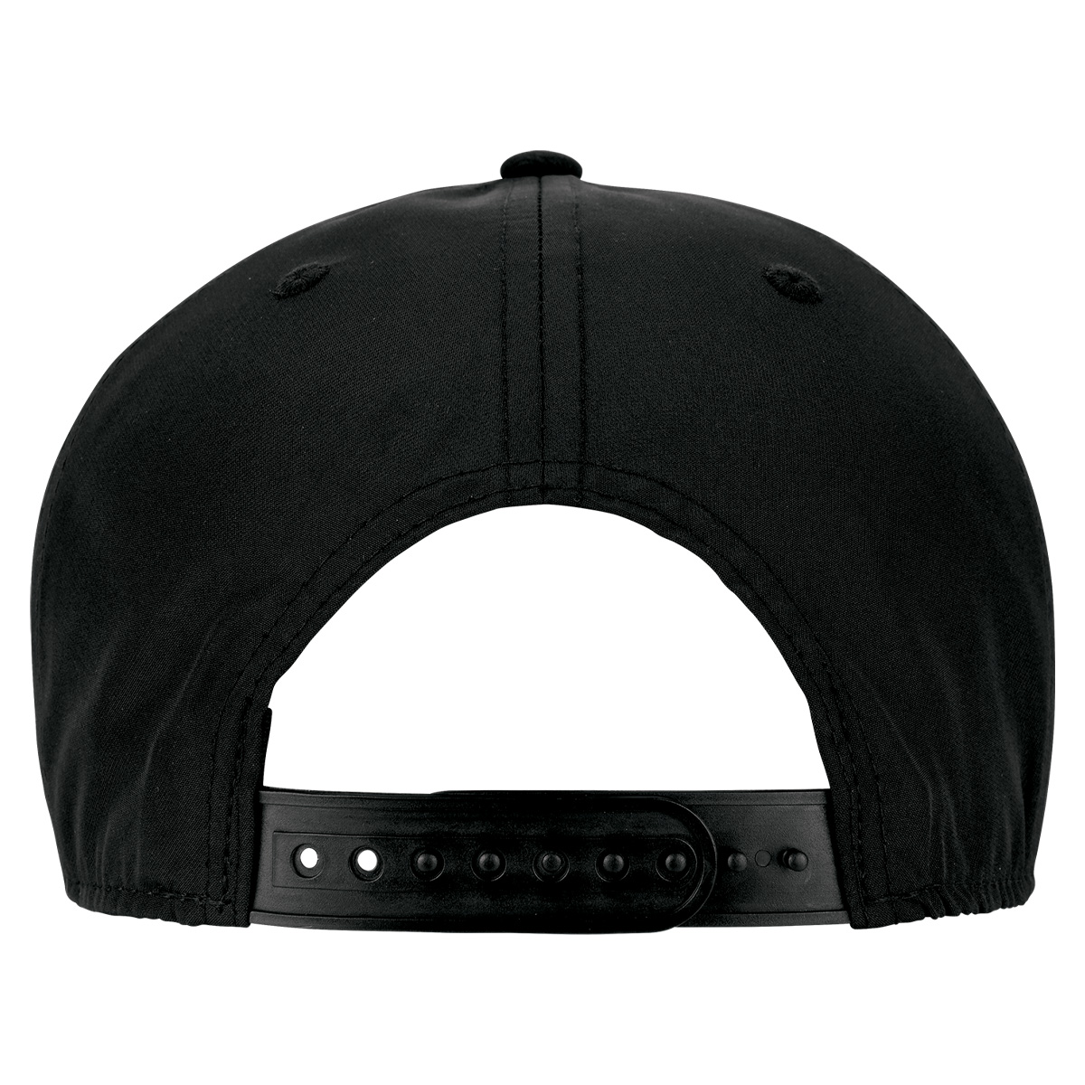- Adjustable fabric strap, matte black clip buckle with grommet and tuck in strap