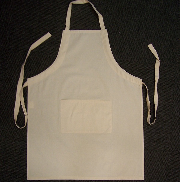 Duck canvas, adjustable shoulder strap, YKK metal strap adjuster, front patch pocket, self fabric waist and neck ties, top stitch detailing, pre-shrunk to minimise shrinkage